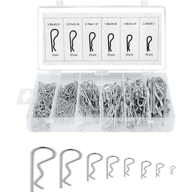 Contenuto: assortimento di 150 pezzi, 6 diverse dimensioni, in grado di soddisfare le tue diverse esigenze Realizzato in acciaio zincato, ha un'elevata durezza, resistenza all'usura, quindi è forte e durevole per una lunga durata La gamma Splint Set include una scatola richiudibile per evitarne la perdita al prossimo utilizzo. Usalo sulla tua auto, autocarro leggero, carro attrezzi, tosaerba, piccolo trattore e altro ancora;