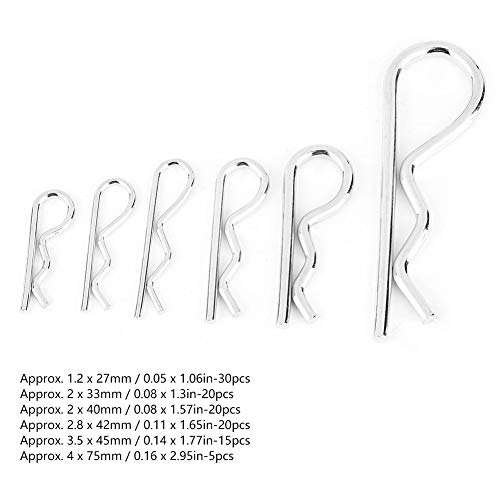 110 Pezzi Coppiglie R Coppiglia Divisa Clip Ondulate, Zincate In Acciaio Inossidabile Kit Assortimento di Clip per Gancio di Traino