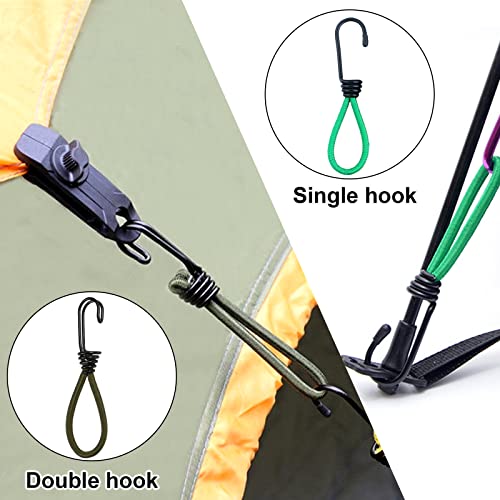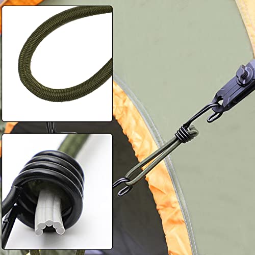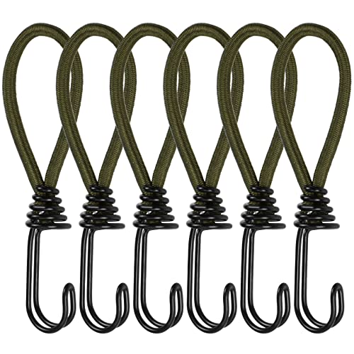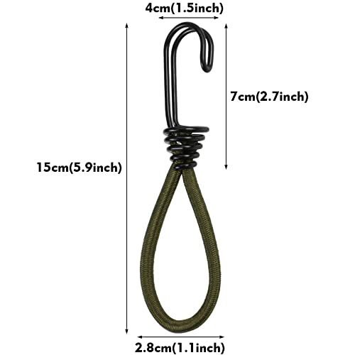 6 Pezzi Corda Elastica con Doppio Gancio, 15 cm Tenditori per Teloni con Doppio Gancio, Elastici Cinghie di Fissaggio per Telone, Gancio Corda Elastico Ganci per Tende da Campeggio(Verde)