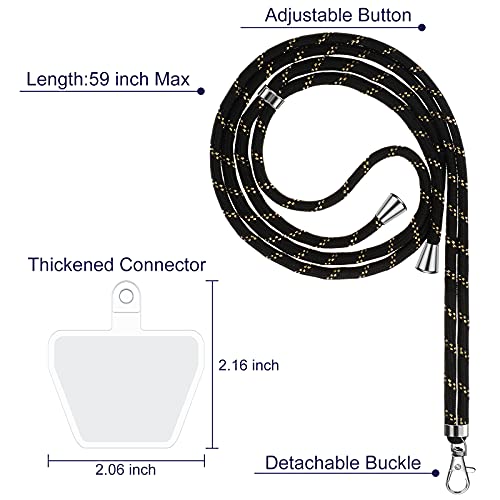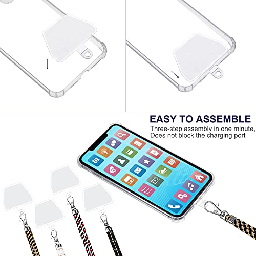 4 Pezzi Corda per Smartphone Universale con Cordino a Tracolla Regolabile in Nylon Staccabile da Collo e 4 Patch Resistenti per Maggior Parte di Smartphone, Neri e Trasparenti (Serie Colore Scuro)