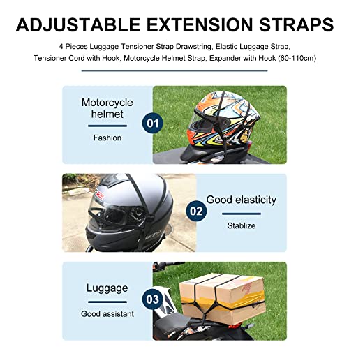 3 Pezzi Corda tendi bagagli, Cinghia elastica per bagagli, Corda di tensione con gancio, Cinghia di estensione regolabile, Cinghia elastica per bicicletta, Cinghia per casco da moto (60-110 cm)