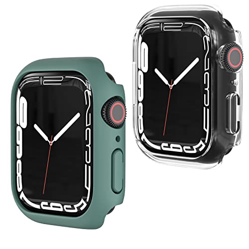 2 Pezzi - Cover per Apple Watch Series 8/7 41mm, Weideworld Anti-graffio Sottile Rigida PC Custodia per Apple Watch Series 8/7 41mm, Trasparente + Verde