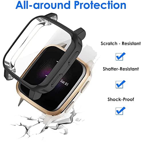 2 Pezzi - Cover per Garmin Venu Sq/Venu Sq Music + Pellicola Vetro, Custodia per TPU Proteggi Schermo [Copertura Completa] Vetro Temperato-(Nero + Bianco)