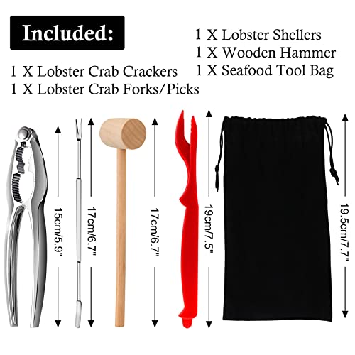 5 Pezzi, Set di Cracker di Frutti di Mare, Cracker di Granchio e Strumenti, Cracker di Aragosta e forchette, Cracker di Noci e Plettri con Custodia per Attrezzi di Pesce