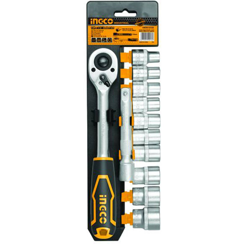 Questo set di cricchetti da 1/2 di INGCO contiene 12 cricchetti in acciaio al cromo-vanadio di alta qualità, con finitura satinata e placca cromata per una maggiore durata. Le misure dei cricchetti sono 10, 11, 12, 13, 14, 15, 17, 19, 21 e 24 mm. Il cricchetto è dotato di un'impugnatura morbida per una presa più comoda e rapida, con una testa a 72 denti per un'azione di serraggio fluida. Inoltre, il set include una barra di estensione da 5 e può essere appeso per un facile accesso.