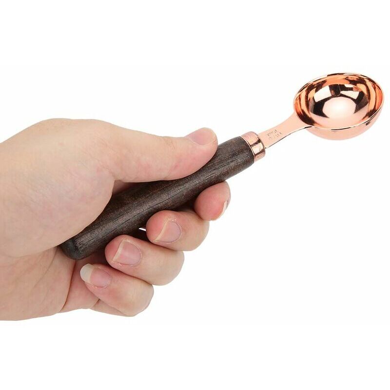 articolo: misurino. Materiale: acciaio inossidabile, legno di noce Colore: oro rosa Capacità: 1,25 ML, 2,5 ML, 5 ML, 15ML Peso: ca. 137g/4,8 once Dimensioni: 1,25 ml: diametro: ca. 2,3 cm/0,9 pollici, lunghezza: circa. 14,8 cm/5,8 pollici 2,5 MLML: Diametro: circa. 2,7 cm/1,1 in, lunghezza: circa. 15,3