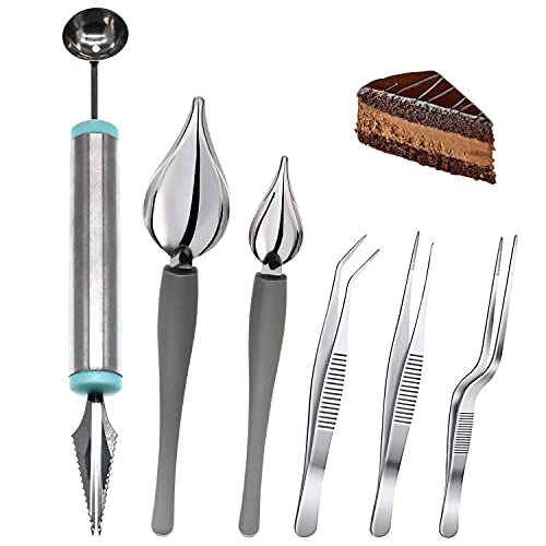 6 Pezzi Cucchiaio da Decorazione Set, Cucchiai da Cucina in Acciaio, Strumenti di Disegno Culinario Set, Cucchiaio Inox per Cucinare, Cucchiaio Intagliato, Pinzette, per Culinaria Fai da Te Strumento