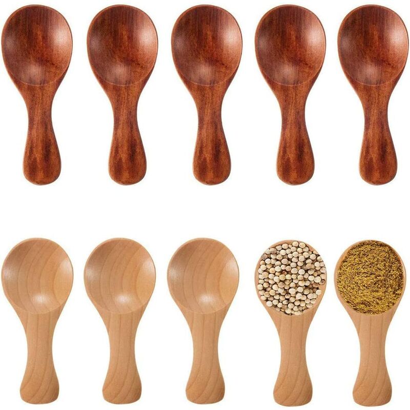 non tossico e sicuro da usare, è un buon sostituto dei cucchiai in ceramica e plastica. Dimensioni: la dimensione è di circa 8,5 * 3,5 cm, è molto stabile, leggera ma robusta, senza crepe, e può durare a lungo anche se usato quotidianamente.può essere usato per cucchiaio di latte in polvere, cucchiaio di condimento come cucchiaino di zucchero da tè, caffè, semplice e chiaro, colore naturale ed elegante. Sicuro Da usare: il materiale in legno può impedire al nostro cucchiaio di legno di congelarsi o bruciarsi le mani quando l'acqua è fredda o calda. I cucchiai di legno non graffiano pentole