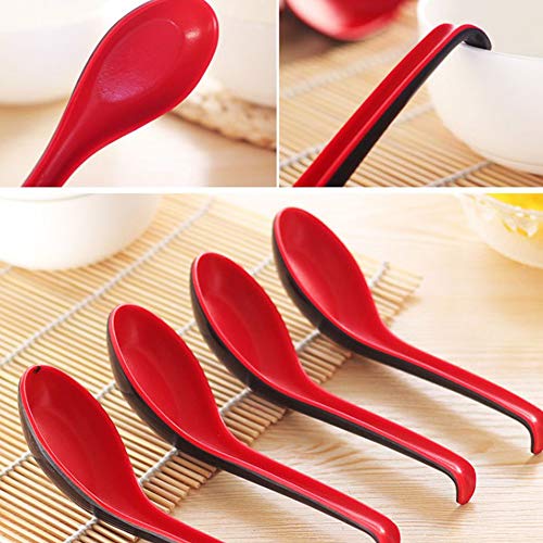 10 Pezzi Cucchiaio da Minestra, Cucchiaio di Plastica per Stile Cinese, Cucchiaio da Minestra Grande Cucchiaio con Manico Lungo, Cucchiai da Minestra di Tagliatelle/Cucchiai da Riso per Casa,Ufficio