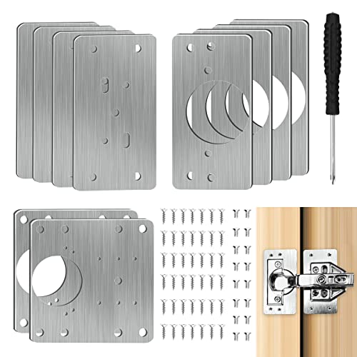 10 Pezzi Cucina Armadio Cerniera,Cerniera Porta Piastra di Montaggio,Acciaio Inossidabile Piastra Riparazione Cerniera,con Viti e Cacciaviti,per Riparare Armadi, Mobili, Cassetti e Finestre (3 Stili)