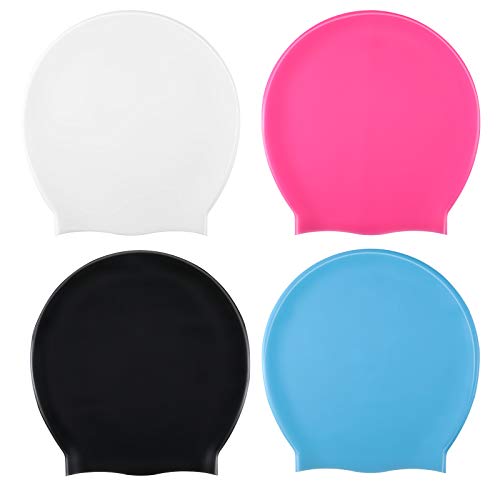 4 Pezzi Cuffia da Nuoto Grande in Silicone Cuffia per Piscina per Uomini e Donne, Cuffia da Nuoto Unisex per Capelli Lunghi, Dreadlocks, Trame, Estensioni dei Capelli, Trecce, Ricci e Afro