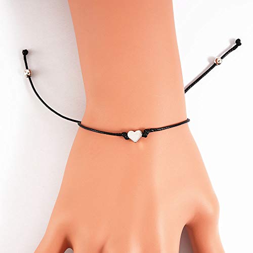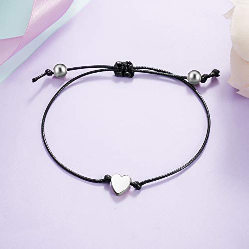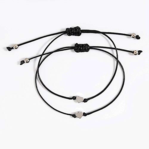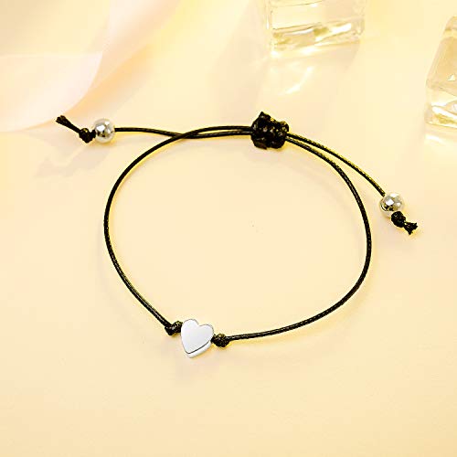 4 Pezzi Cuore Braccialetto Argento Braccialetto di Amicizia per Ragazze Donna, Feelairy Braccialetti a Corda Sottile Regolabile Braccialetto Fatto a Mano Regalo per Coppia Compleanno Natale Festa
