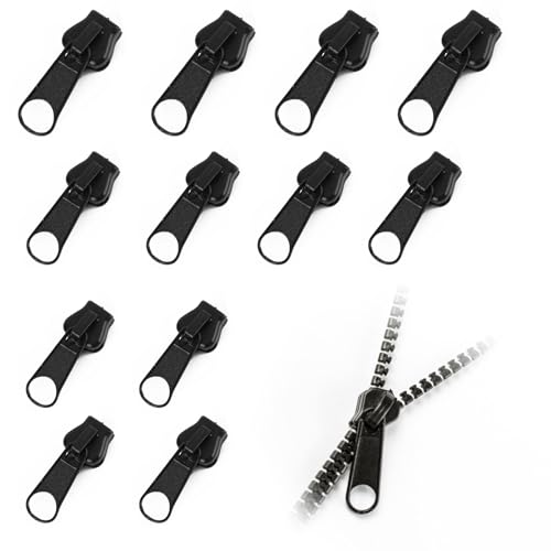 12 pezzi Cursore Cerniera Ricambio, cerniera di ricambio universale,zip Slider riparazione istantanea kit di sostituzione cerniera,cerniera staccabile per giacca, cappotto, valigia (Nero)