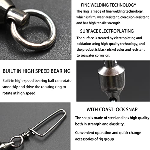 10 pezzi cuscinetti a sfera girevole con anello saldato e Coastlock Snap Fishing Hook to Line connettori 8,2 kg-158,8 kg (taglia 3+3 27,2 kg 20pcs)