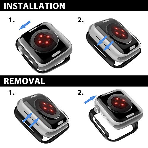 LϟK 2 Pezzi Custodia Cover + Protezione Schermo per Apple Watch Series 6/5/4/SE 44mm - Copertura Completa Custodia Rigida con Vetro Temperato per iwatch Series 6/5/4/SE 44mm - Nero