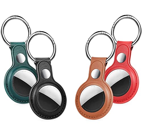 4 Pezzi Custodie per Airtag PU Pelle da Custodia Localizzatore Cover Anti-Smarrimento con Porta Chiavi Protettiva Anti-Caduta Portachiavi Portatile Fondina per GPS Cane Collare Bagagli Portafoglio