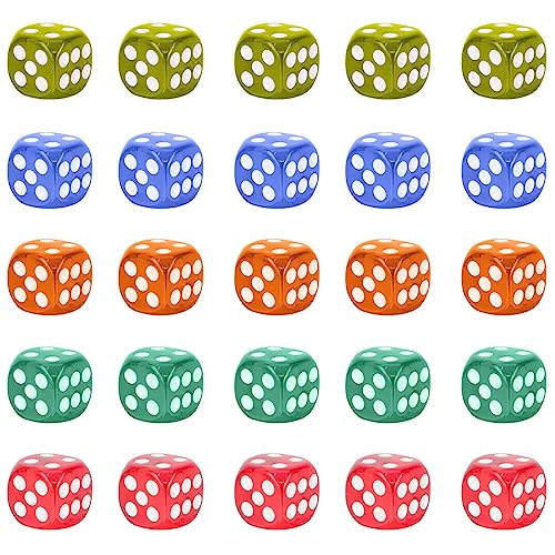30 Pezzi Dadi 6 Facce 16mm Dadi da Gioco per enzi,Farkle, Yahtzee, Bunco or Insegnare i Matematici, 5 Colori