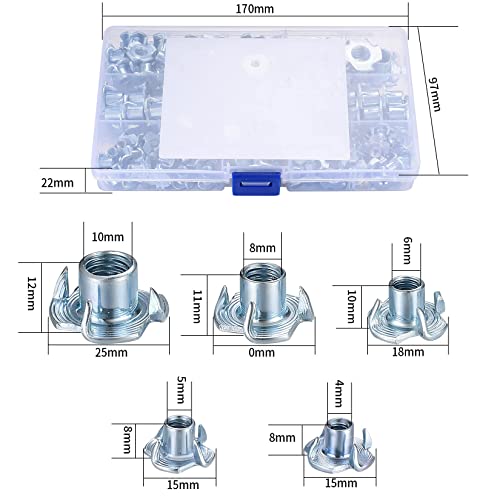 110 Pezzi Kit Dadi a T, Dadi Guida M4 M5 M6 M8 M10, Dado a Quattro Punte Guida, Inserti Dado Acciaio Carbonio per Mobili, Artigiani, Legno