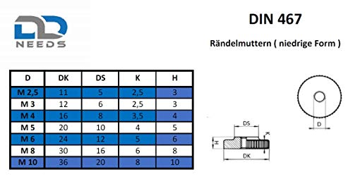 D2D | VPE: 4 pezzi - Dadi zigrinati M 6 secondo DIN 467 forma bassa in acciaio inox A1 VA - con bordo zigrinato