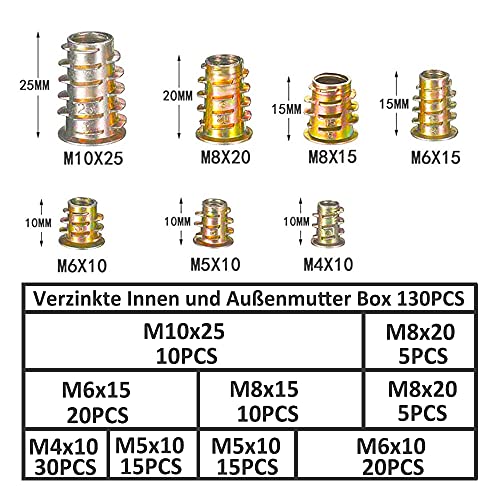 130 Pezzi dado Esagonale in Lega di zinco, kit utensili M4 M5 M6 M8 M10, con Scatola di Plastica, per Mobili in Legno