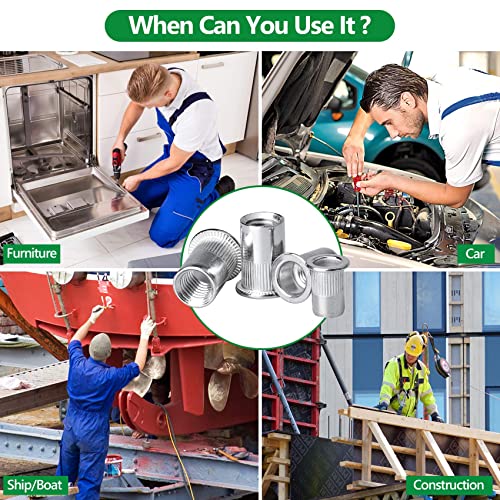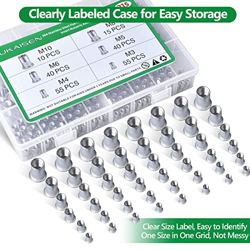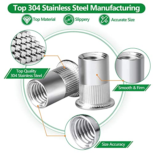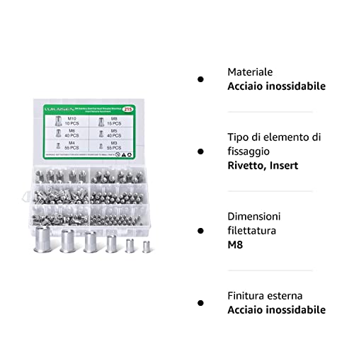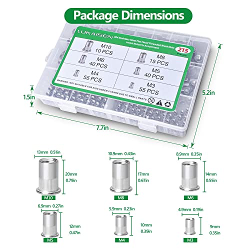 215 Pezzi Dado per Rivetto, Dadi Filettati con Testa Piatta Acciaio Inox 304 Inserti Rivetti Filettati M3/M4/M5/M6/M8/M10 Dadi per Rivetti Con scatola di immagazzinaggio per Mobili Automobili
