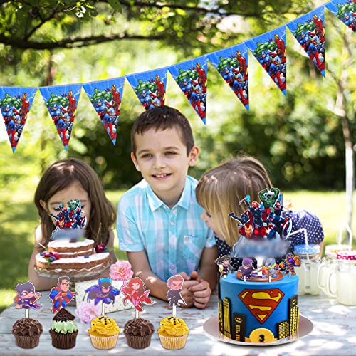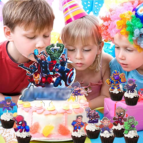 Set di topper per torta di compleanno per bambini: include 1 topper per torta di buon compleanno + 24 topper per cupcake (24 motivi diversi) + 1 ghirlanda di compleanno con una lunghezza di 2,5 m.