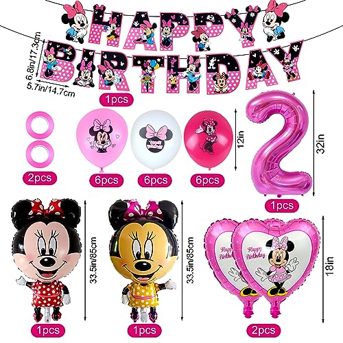 91 Pezzi Decorazioni Compleanno Minnie 2 Anni, Kit Festa Compleanno Bambina Minnie Palloncini 2 Anni, Decorazione Torta Minnie 2 Anni, Stoviglie Minnie 2 Anno, Decorazioni Festa Minnie 2 Anni