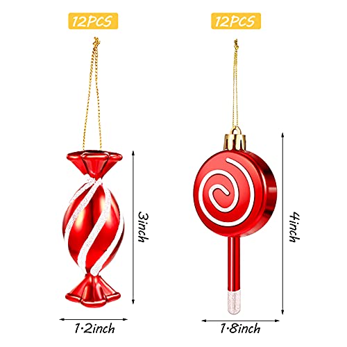 Combinazioni ideali: il pacchetto viene fornito con 24 pezzi di ornamenti per caramelle in 2 stili, inclusi 12 pezzi di ornamenti per lecca-lecca e 12 pezzi di ornamenti per caramelle a spirale, quantità e stili sufficienti per l'uso e la sostituzione di Natale