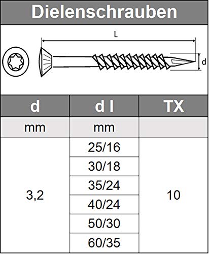 50 pezzi diele viti 3,2 X 25/16 fino a 3,2 X 60/35 Torx Tx 10 con lente testa, Acciaio Inox A2