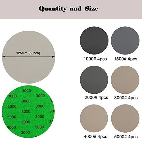 24 Pezzi 125 Mm Dischi di Carta Abrasiva, Carta Abrasiva Ad Acqua a Disco, 1000/1500/2000/3000/4000/5000, Asciutti Bagnati Carta Abrasiv, per Carta Vetrata per Legno Levigatura Lucidatura Derusting