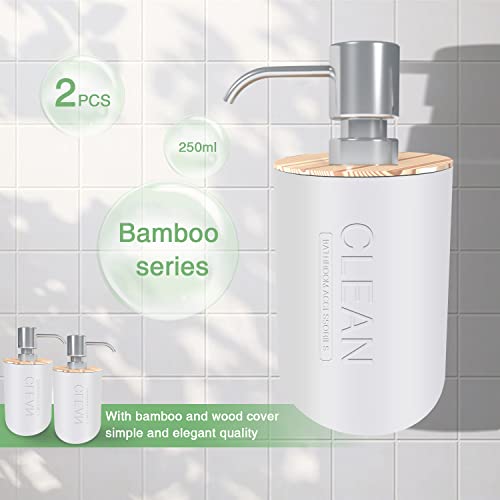2 Pezzi Dispenser Sapone, 250ml Dispenser di Sapone per Shampoo, Flacone a Pompa Riutilizzabile, Dispenser per Pompa con Etichetta, Flacone Dosatore Vuoti per Shampoo Lozioni Bagno Cucina