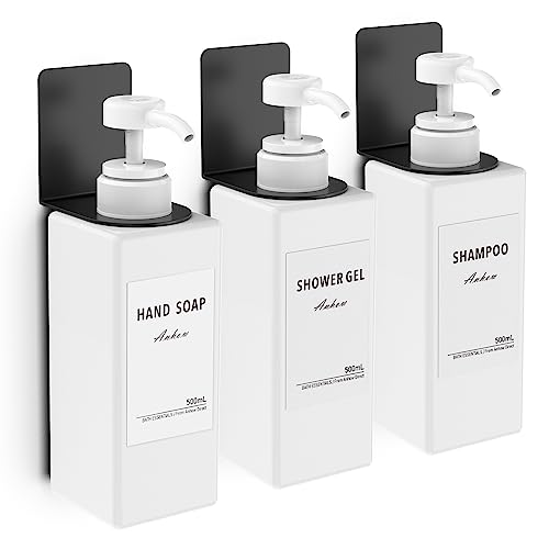 3 Pezzi Dispenser Sapone Muro, Dispenser Sapone Bagno 500 ml con Etichetta per Bagno Doccia Cucina Shampoo e Bagnoschiuma - Bianco