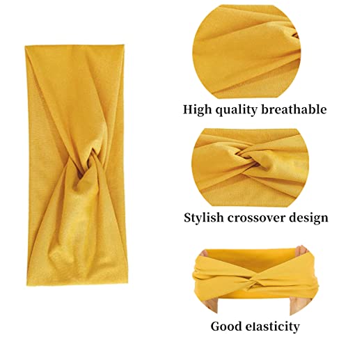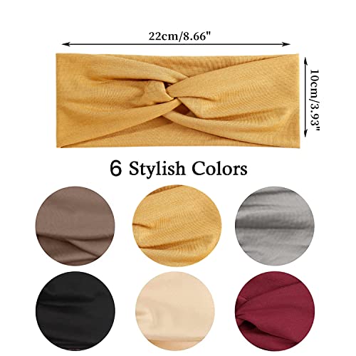 6 Pezzi Donne Turbante Fasce Elastiche, Senza Scivolare Nodo Croce Ampio Fasce per capelli Stretchy per Ragazze e Donne Yoga Sport Corsa Allenamento Fitness Fasce per capelli 6 Colori