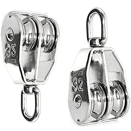 2 Pezzi Doppia Puleggia,Ruota a Doppia Puleggia,Puleggia in Acciaio Inossidabile,Blocco Puleggia,Sollevamento,Puleggia Motrice,Ruota di Trazione,Cuscinetto delle Pulegge a Fune Metallica M32