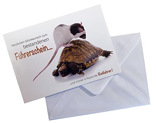 3 pezzi doppia scheda biglietto con busta per la patente tartaruga con ratto Congratulazioni per bestandenen patente e sempre rilassata passeggero. "