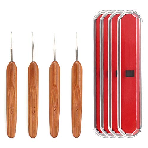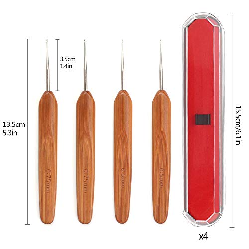 4 pezzi dreadlock uncinetto, 1 ganci, 2 × 0,5 mm e 2 × 0,75 mm treccine Kit uncinetto + 4 × Crochet Box, Bamboo Crochet Needle per dreads Tool Twist Hair Extensions