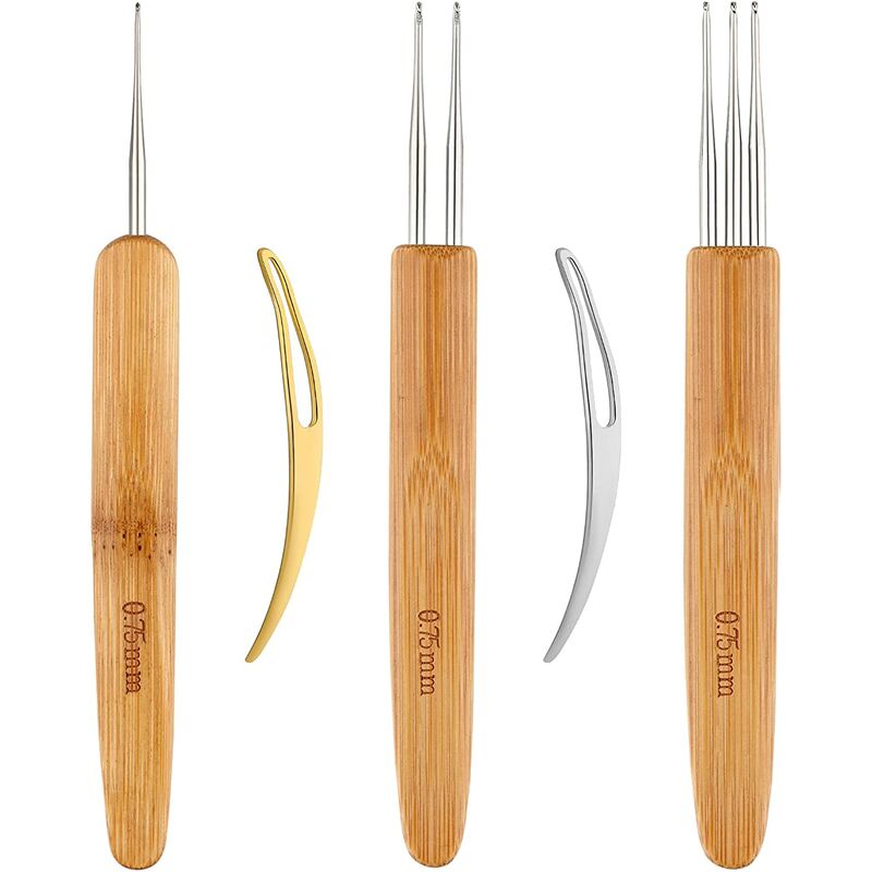 Pacchetto incluso: riceverai 5 strumenti per intrecciare tra cui 2 intrecciatori per capelli e 3 ganci per capelli con 1 gancio, 2 ganci e 3 ganci. Quantità sufficiente per soddisfare perfettamente le vostre diverse esigenze di tessitura. MATERIALI PREMIUM: Questi strumenti sono realizzati in bambù naturale di alta qualità e acciaio inossidabile, materiali durevoli, di alta qualità e affidabili che non danneggeranno il cuoio capelluto o i capelli. Con un manico in bambù, questi ganci per capelli sono facili da usare. Vari design: questi ganci sono 0,75 mm e lo strumento per ganci per capelli è progettato con 3 diversi numeri di ganci, di cui 1 gancio, 2 ganci e 3 ganci. La varietà di stili ti consentirà di creare acconciature diverse. Facile da usare: puoi agganciare i capelli mentre li intreccia fino a quando la treccia non è tesa e lo strumento forcina ti aiuterà ad appendere i capelli la treccia. usa questi strumenti