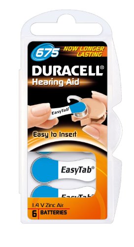 6 pezzi. Duracell tipo 675 Easy Tab batterie per apparecchi acustici