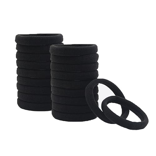 50 Pezzi Elastici Capelli Donna, Elastici Capelli Neri di Cotone, Fasce Elastici per Capelli per Donne e Ragazze per Capelli Spessi (Nero)