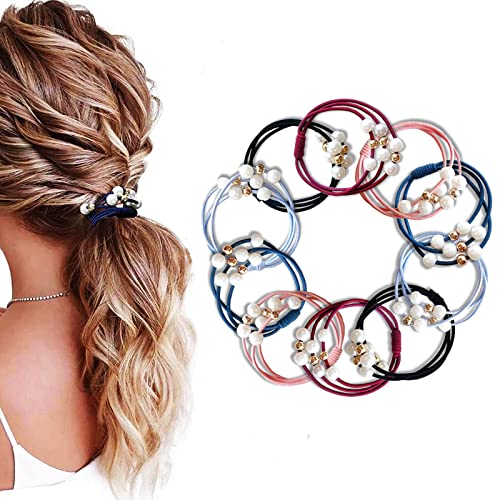 18 Pezzi elastici per capelli con perle,Perle per Donna Cravatte Fasce per Capelli, per donne e ragazze vintage con perline accessori per lo styling dei coreani