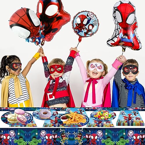 53 Pezzi Eroi ragno amazing friends compleanno,decorazioni Eroi ragno compleanno,piatti Eroi ragno compleanno,palloncino Eroi ragno,tovaglia Eroi ragno,maschere di Eroi ragno,tovaglioli Eroi ragno