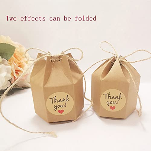50 Pezzi Esagonali Confezioni Regalo, Scatole Regalo In Carta Kraft, Scatole Di Caramelle, Scatole Regalo Piega, Scatola Di Regalo Marrone, per Matrimoni, Natale, Caramelle, Regalo(Marrone A)