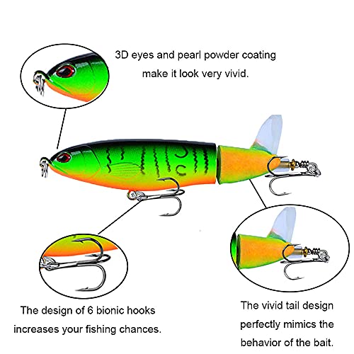 ❤ DESIGN PERFETTO ❤: Gli occhi realistici 3d e il rivestimento in polvere di perle rendono l'esca molto vivida. La morbida coda 3d a forma di t con lame rotanti a 360 ° può calciare e colpire duramente anche a basse velocità. Il design vivace imita perfettamente il comportamento instabile dell'esca.