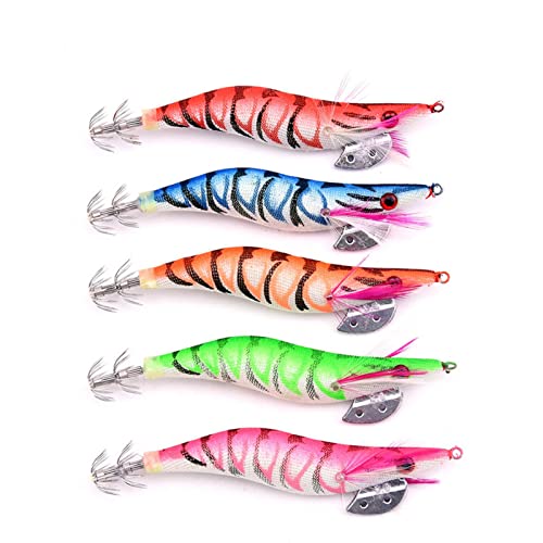 5 pezzi di esche da pesca bioniche morbide | Esche da pesca per gamberetti morbidi - Simulazione esca morbida, esca da pesca per acqua salata e dolce, calamari, seppie, accessori per la pesca Loandicy
