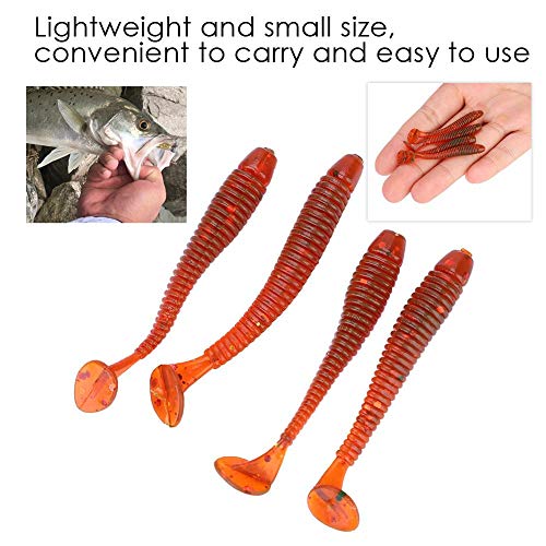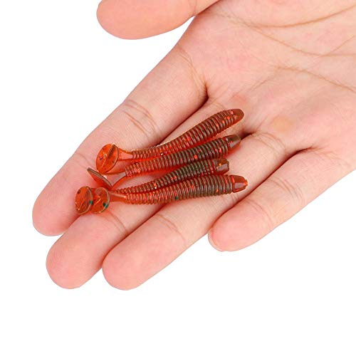 50 Pezzi Esche da Pesca Esche Set, plastica Morbida t-Tail Esca, 9 Colori Larve Esche da Verme Pesce Tackle Accessorio (Rosso)