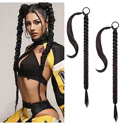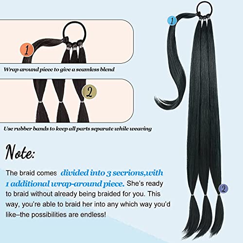 2 Pezzi Estensione Coda Cavallo, 80cm Parrucca per Estensioni dei Capelli Coda Cavallo Treccia a Coda di Cavallo Treccia di Estensione Sintetica, Nero, 150g