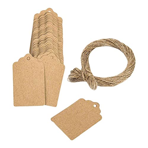 100 Pezzi Etichetta Marrone, Etichetta in Carta Kraft con Spago di a Forma 5x3 Cm Cartellini Vuoti per Progetti Artigianali, Etic