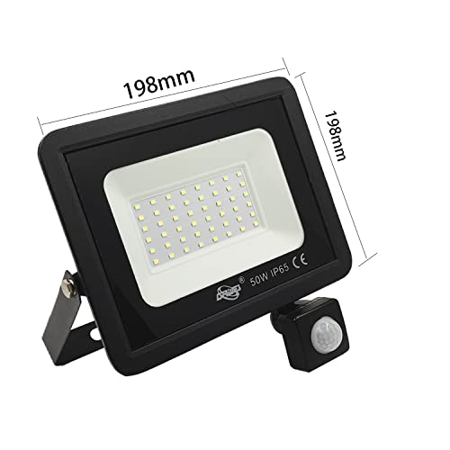 2 Pezzi 50w Faretto con Sensore di Movimento 5000LM IP65 Bianco Freddo 6000K Impermeabile ANMECS Faro LED Esterno con Sensore Faretti LED per Giardino Terrazza Corridoio Parcheggio (50W)