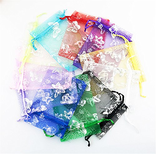 100 Pezzi Farfalla Coulisse Sacchetti regalo in Organza Multicolori Nozze Favore Borse Gioielli per Matrimonio Compleanno Battesimo Comunione Nascita Festa Natale 13 x 18cm