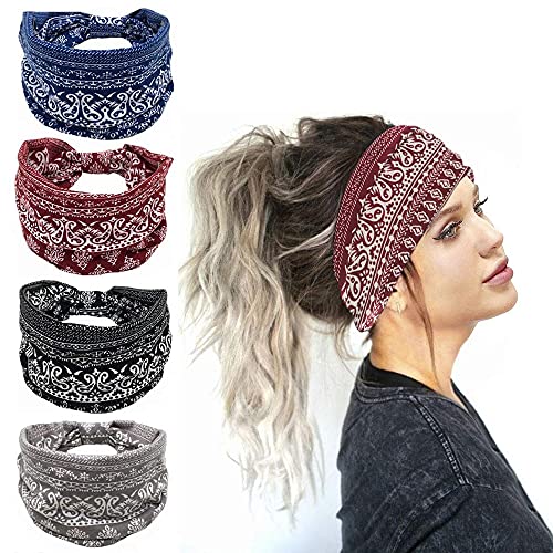 4 Pezzi Fasce Boho, Fasce per Capelli, Bandane Elastiche, Fasce per Capelli da Donna, Fascia per Capelli in Stile Bohémien, Antiscivolo Accessori per Capelli Versatili per Yoga Corsa Sportiva Ciclismo